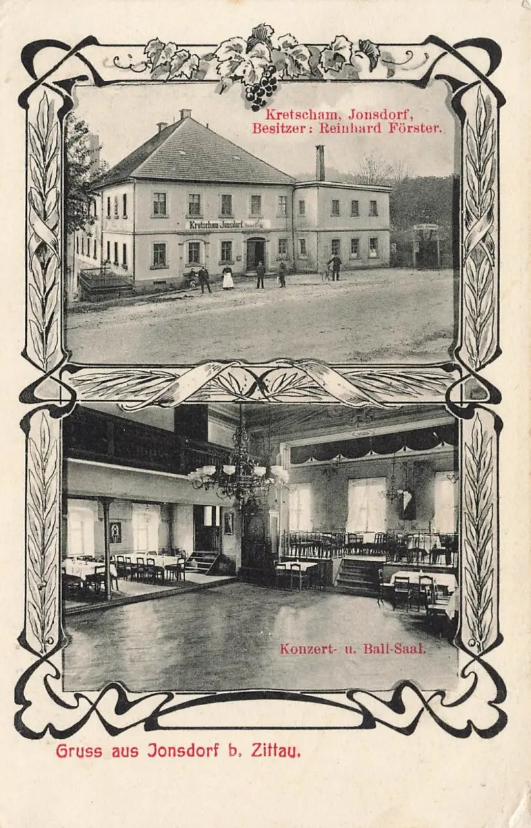 Gruss aus Jonsdorf b. Zittau Konzert- u. Ball-Saal Kretscham Postkarte AK 1909