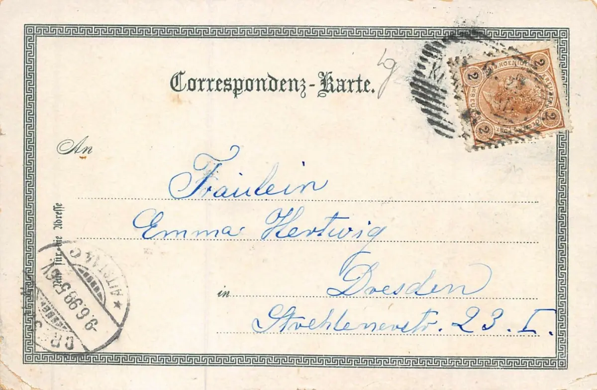 Rückseite: gelaufen 1899 nach Dresden-Altst.