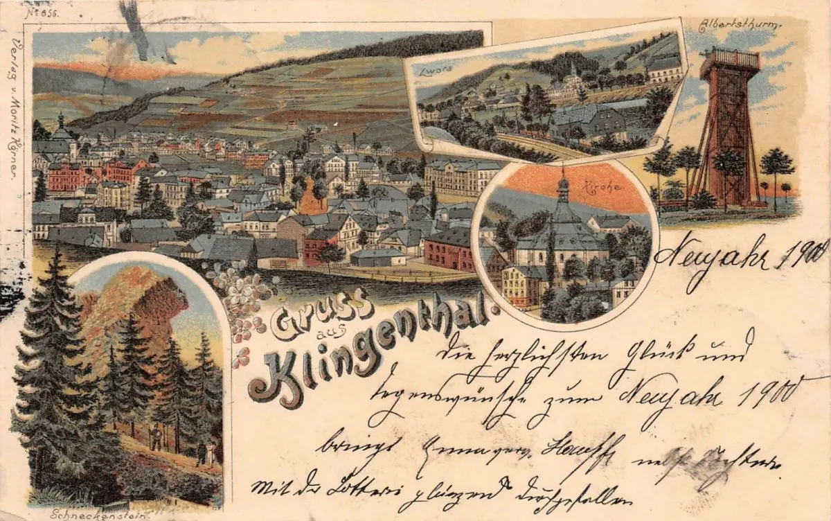 Gruss aus Klingenthal Kirche, Albertsturm Vogtland Sachsen Litho AK 1900