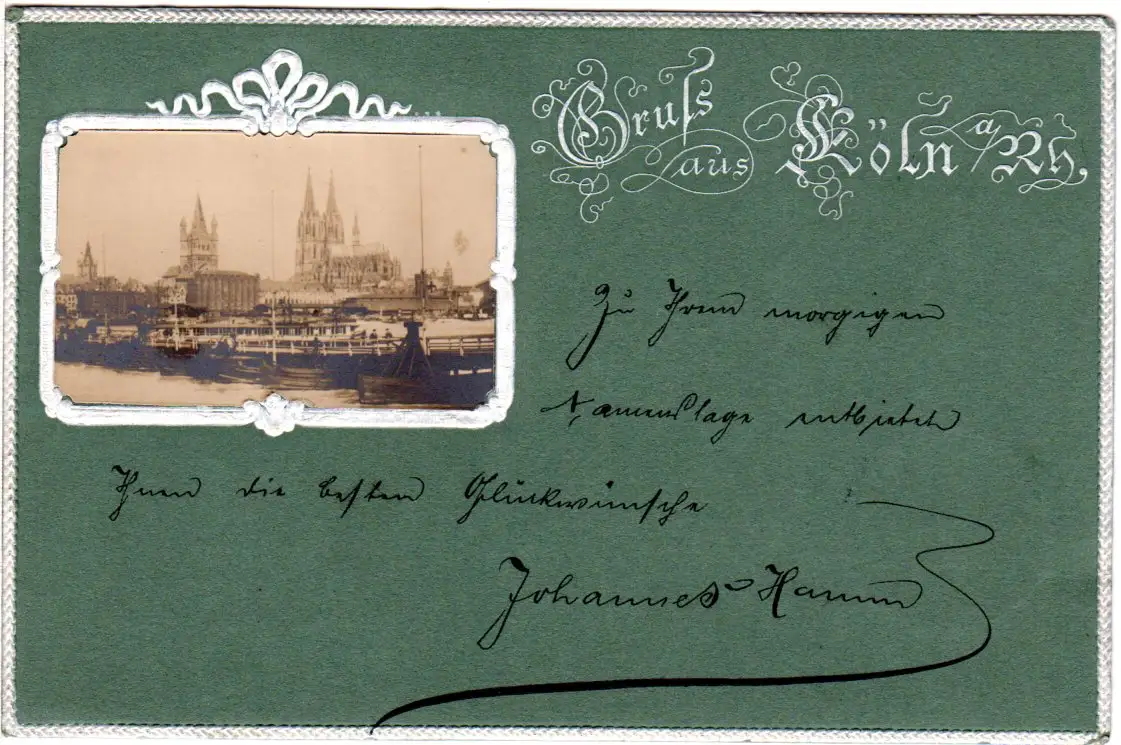 Gruss aus Köln, attraktive, 1901 m. 2 Pf. Germania Reichspost gebr. Präge-AK