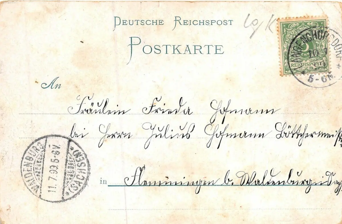 Rückseite: gelaufen 1899 von Langenhursdorf nach Waldenburg (Sachsen)