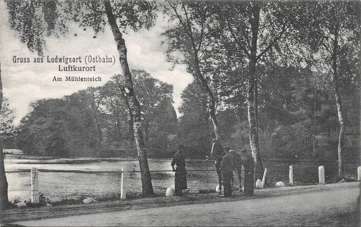 Gruss aus Ludwigsort (Ostbahn) Luftkurort Am Mühlenteich Feldpostkarte AK 1915