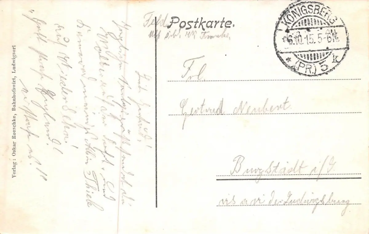 Rückseite: gelaufen 1915 von Königsberg (Pr.)