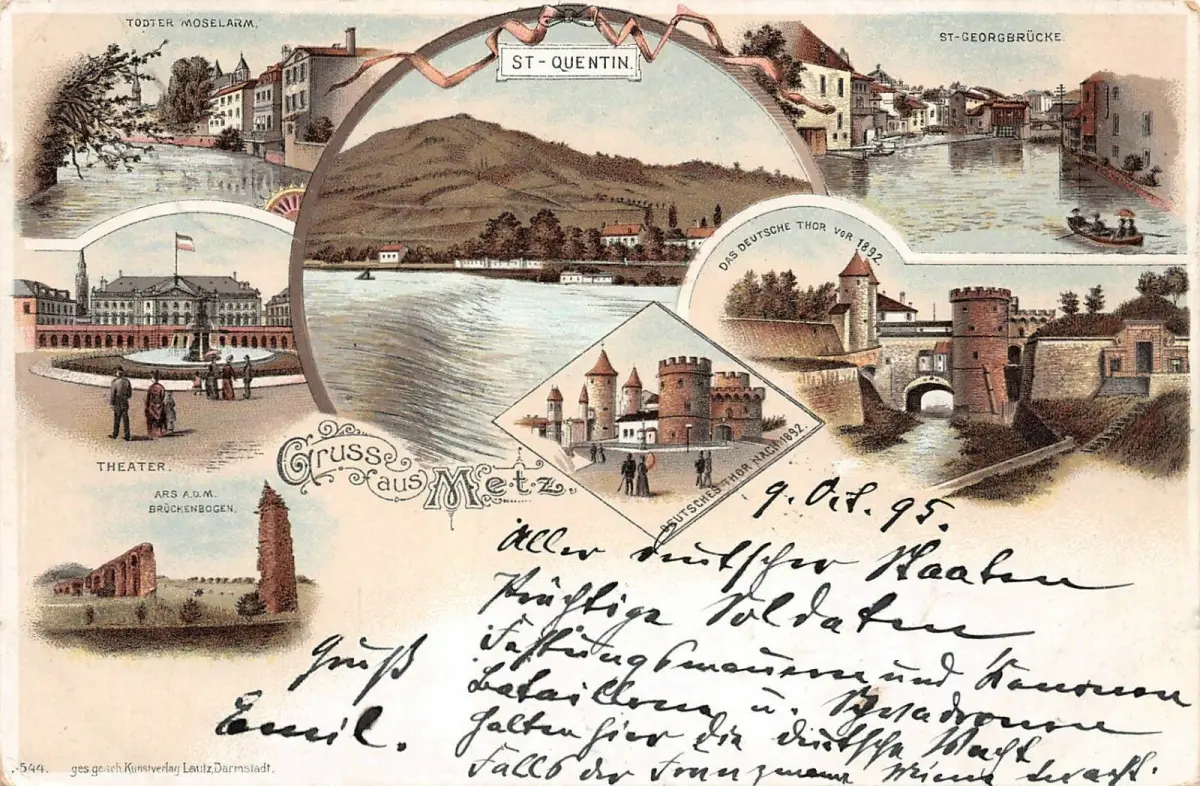 Gruss aus Metz St-Quentin Theater St-Georgbrücke Litho AK 1895