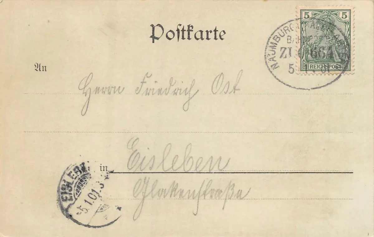Rückseite: gelaufen 1901 nach Eisleben