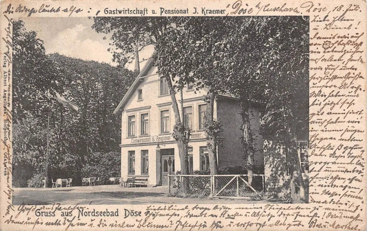 Gruss aus Nordseebad Döse Gastwirtschaft u. Pensionat J. Kraemer Postkarte 1905