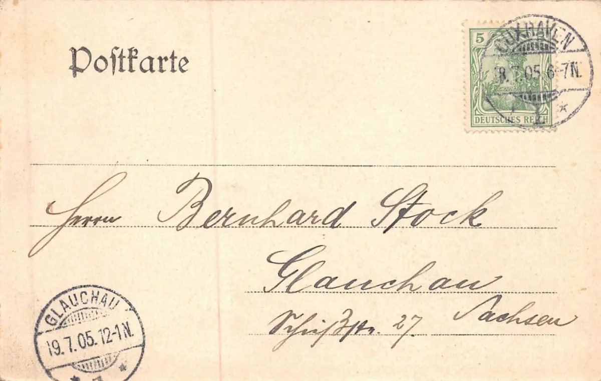Rückseite: gelaufen 1905 von Cuxhaven nach Glauchau