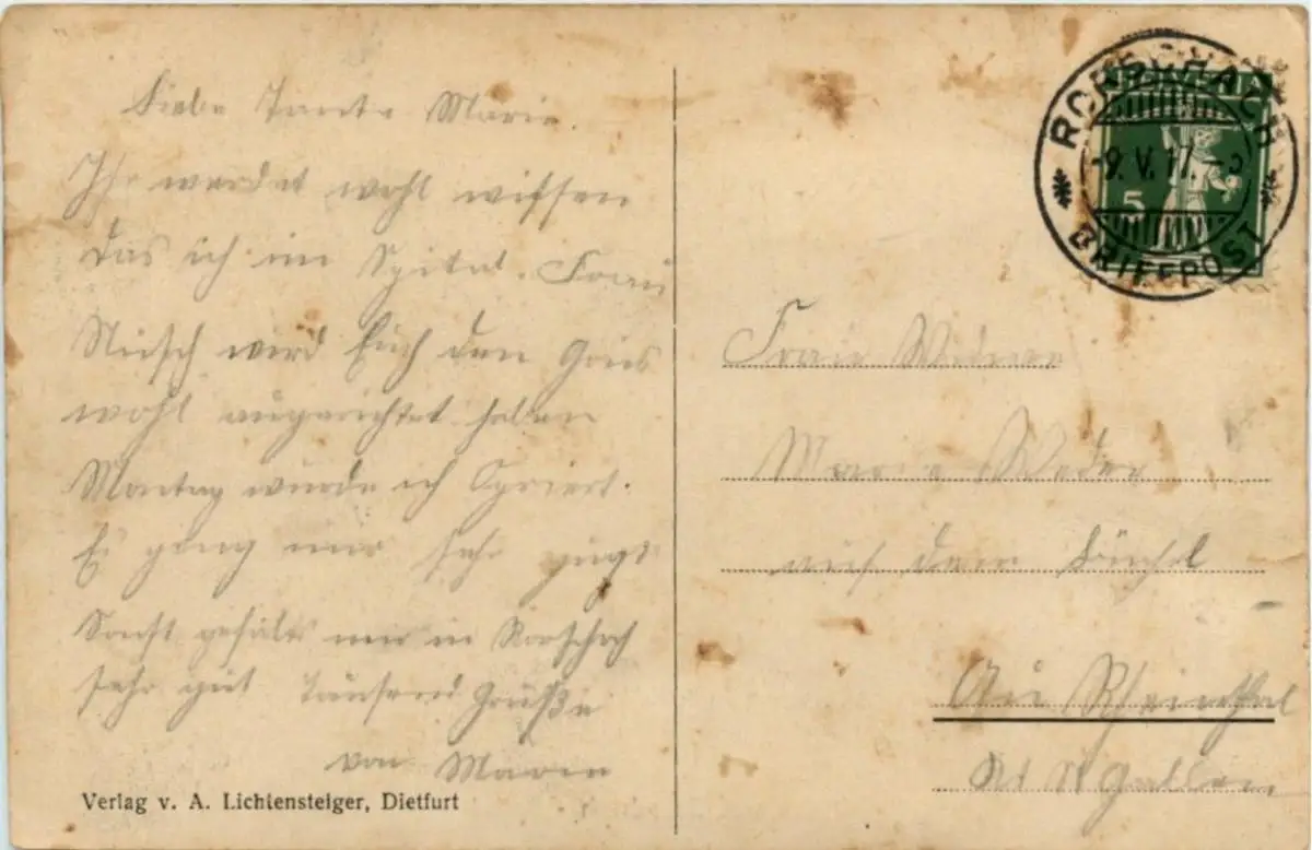 Danke. Alles Bestens. Können Sie mir allenfalls mitteilen, aus welchem Jahr die Postkarte stammt? Besten Dank.