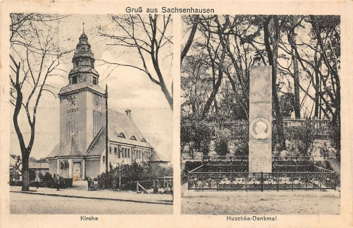 Gruß aus Sachsenhausen Kirche Huschke-Denkmal AK 1908