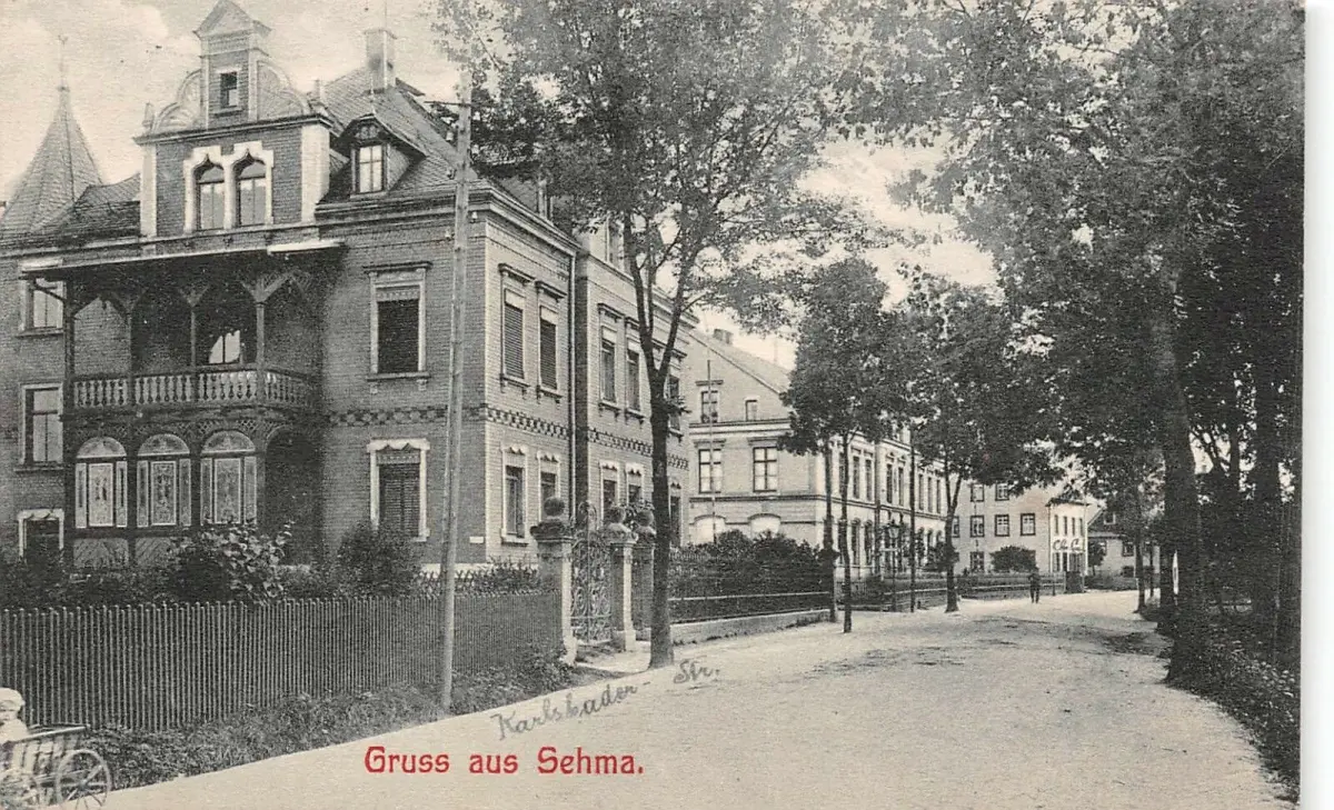 Gruss aus Sehma Karlsbader-straße Sachsen Postkarte AK 1909