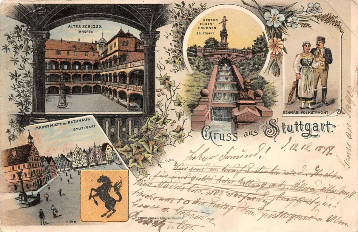 Gruss aus Stuttgart Altes Schloss Marktplatz Rathaus Postkarte 1899