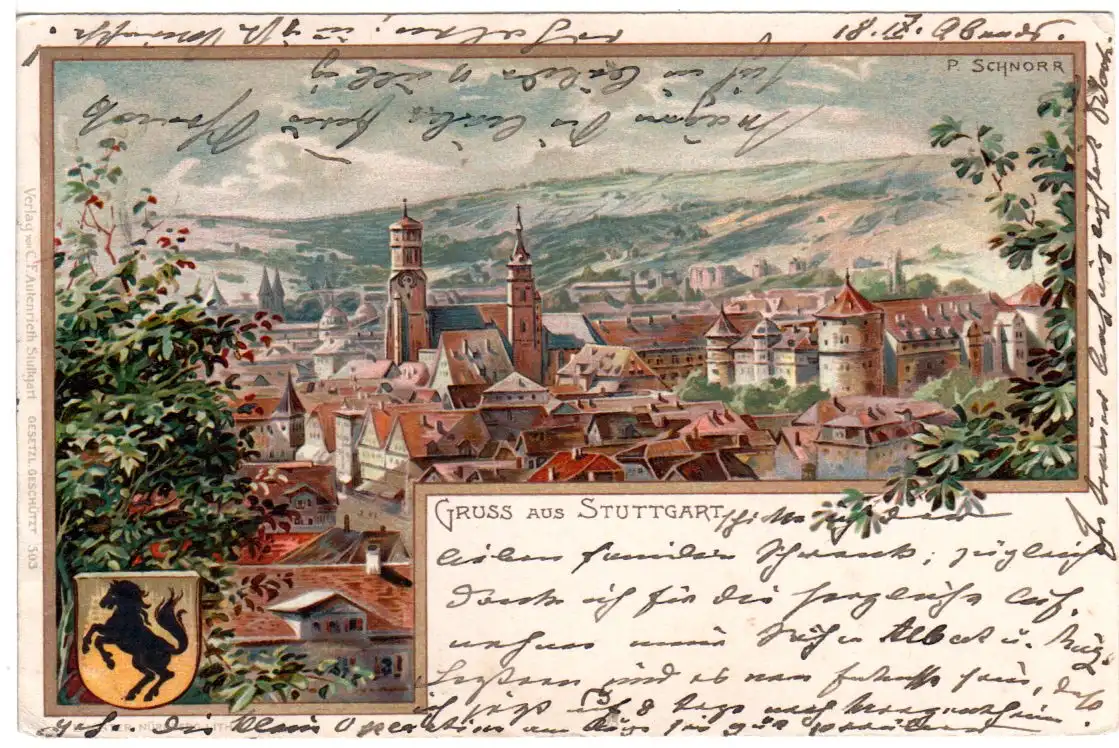 Gruss aus Stuttgart, schöne 1900 gebr. Künstler-AK