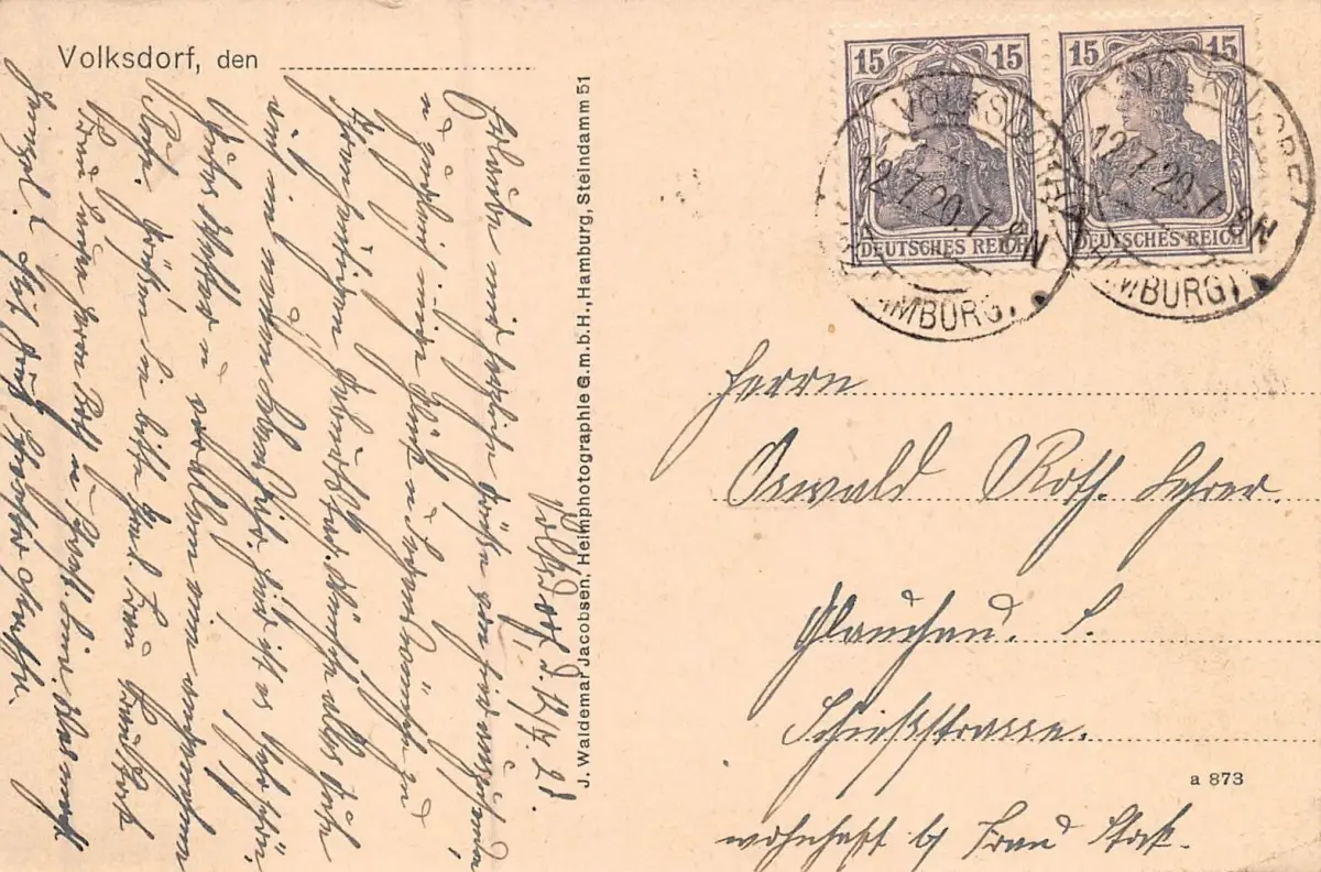 Rückseite: gelaufen 1920 von Volksdorf (Hamburg)
