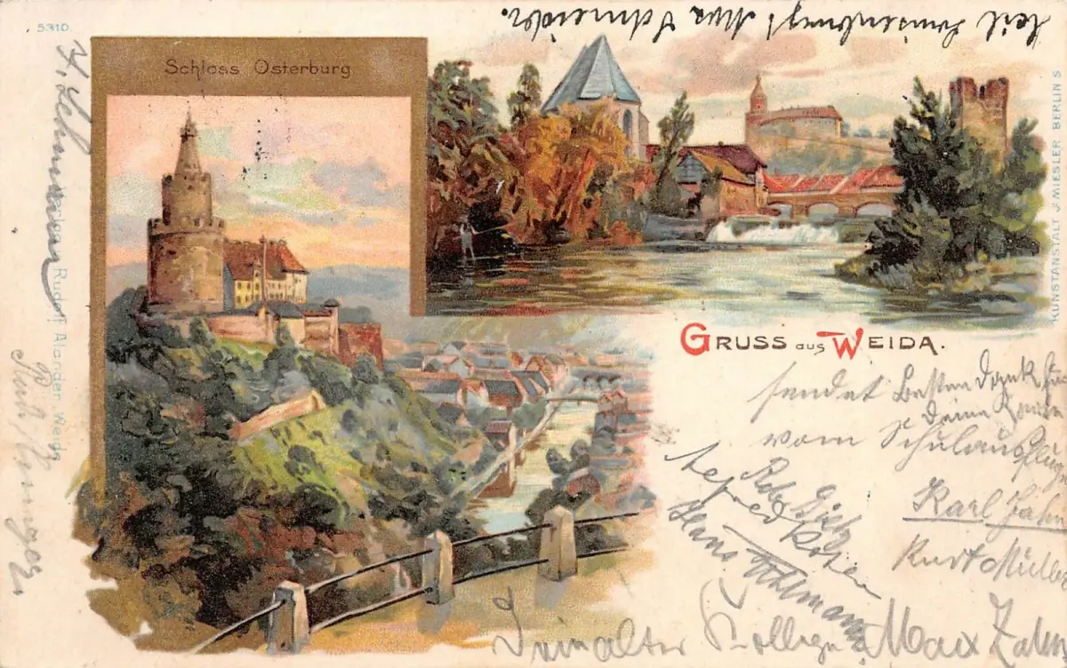 Gruss aus Weida Schloss Osterburg Litho AK 1898