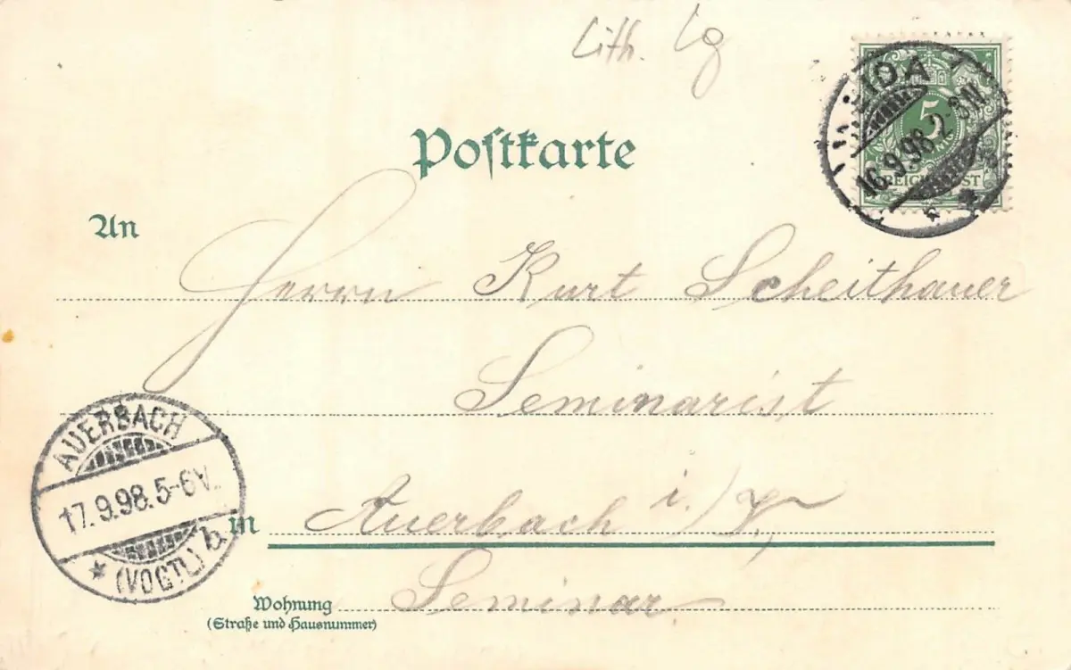 Rückseite: gelaufen 1898 von Weida nach Auerbach (Vogtl.)