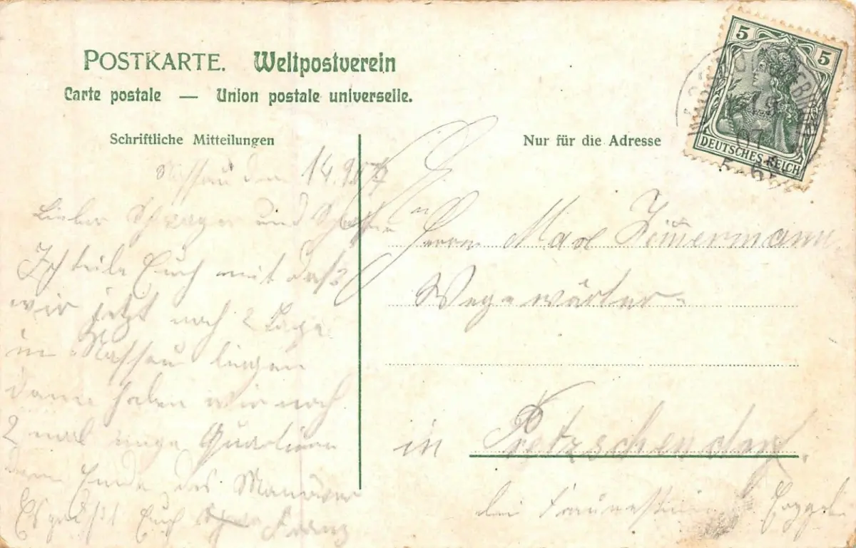 Rückseite: gelaufen 1907