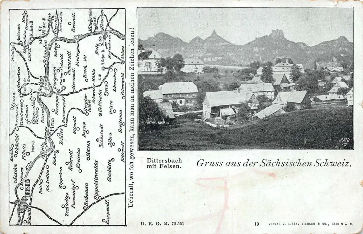 Gruß aus der Sächsischen Schweiz Sommerfrische Dittersbach mit Felsen Sachsen AK