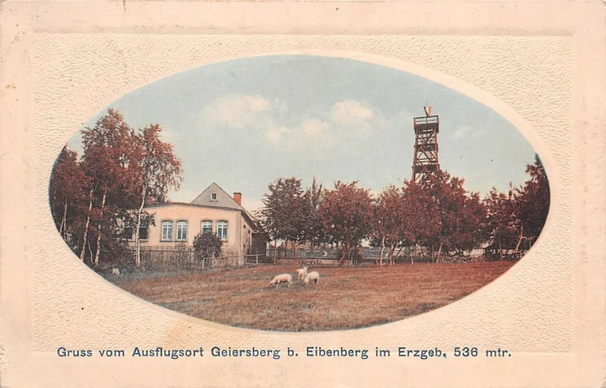 Gruss vom Ausflugsort Geiersberg b. Eibenberg im Erzgeb. Feldpost AK 1917