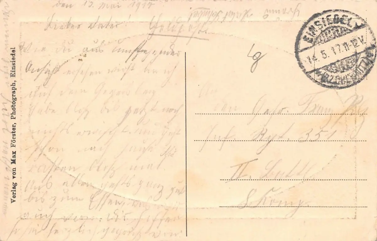 Rückseite: gelaufen 1917 von Einsiedel (Bz. Chemnitz)