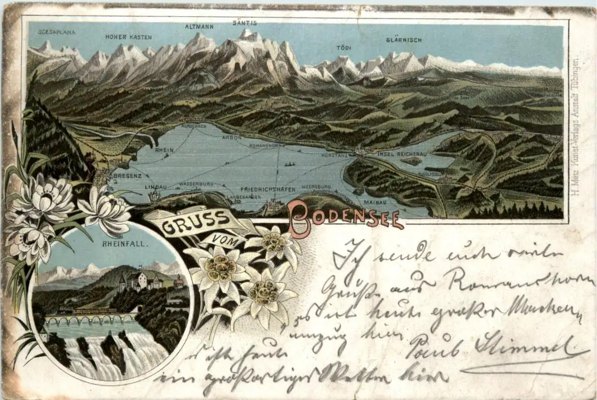Gruss vom Bodensee - Rheinfall - Litho -73602