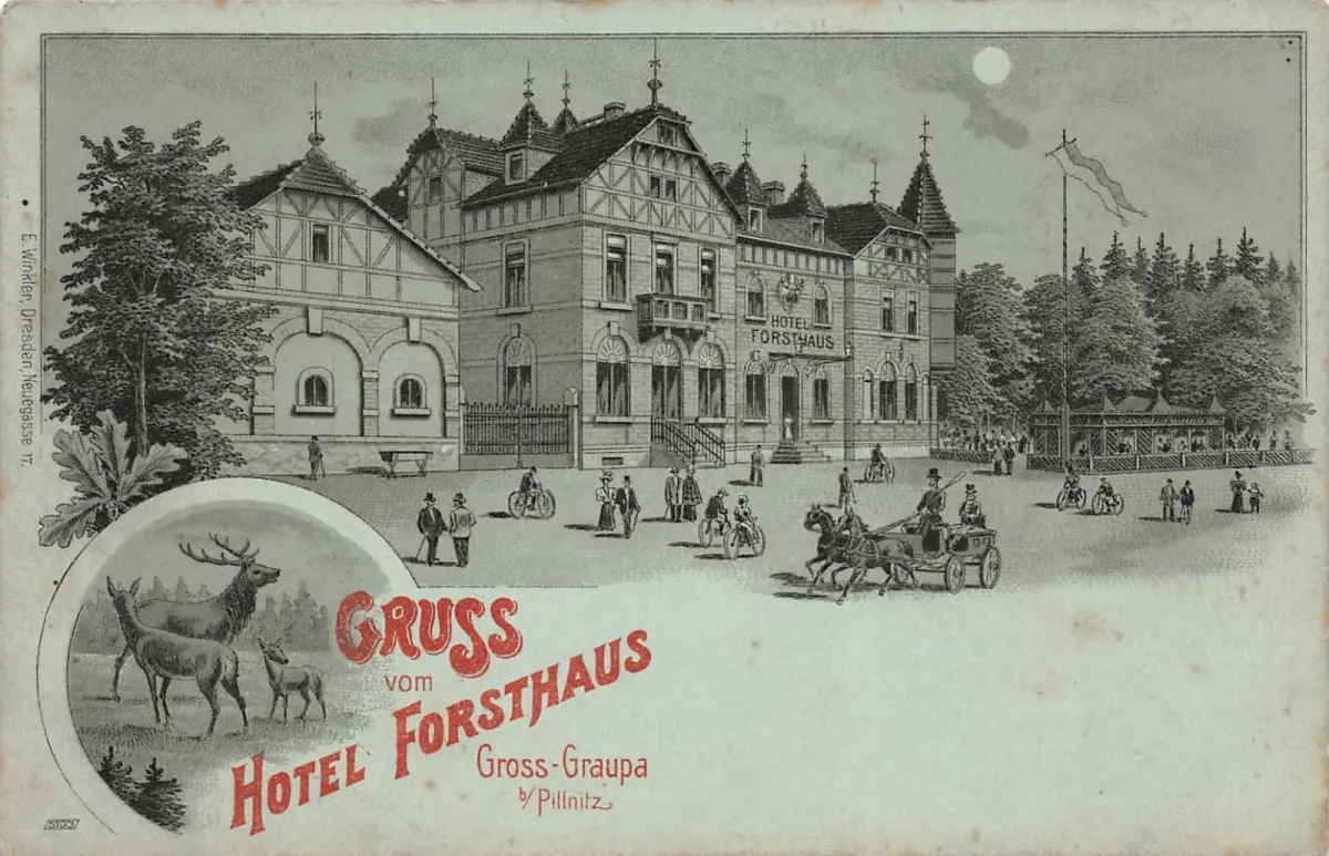 Gruß vom Hotel in Gross Graupa bei Pillnitz Sachsen Litho Mondschein-Postkarte