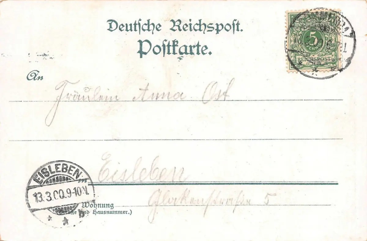 Rückseite: gelaufen 1900 von Sömmerda nach Eisleben