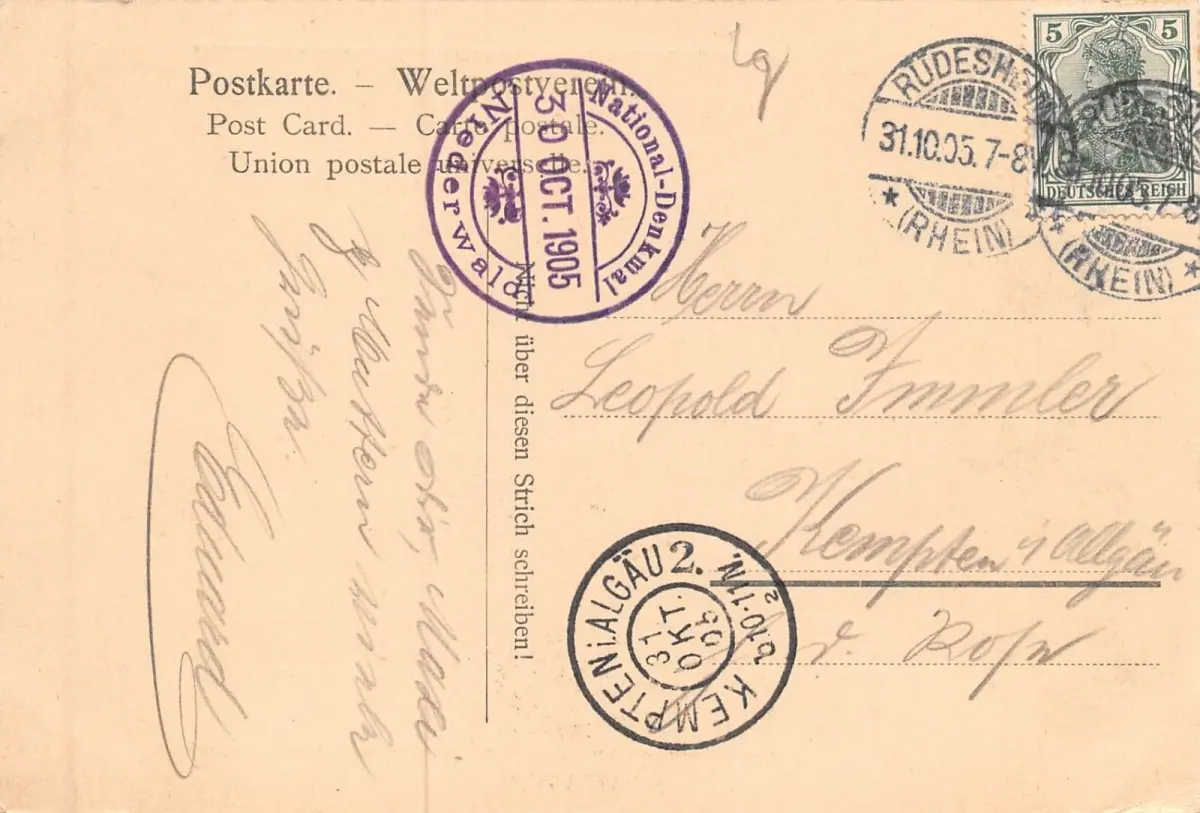 Rückseite: gelaufen 1905 von Rüdesheim (Rhein)