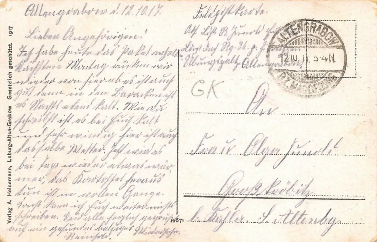 Rückseite: gelaufen 1917
