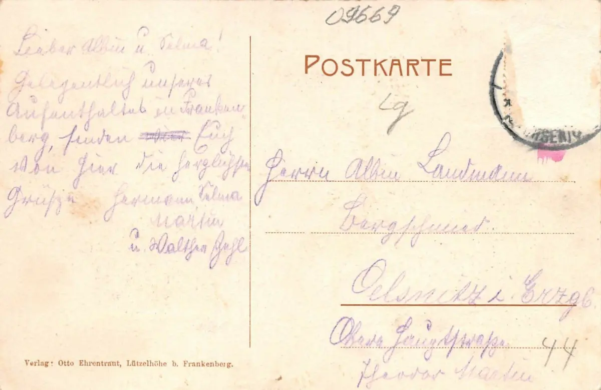 Gruss von der Lützelhöhe Frankenberg Postkarte
