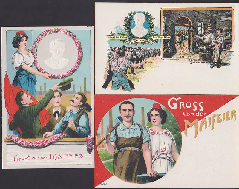 Gruss von der Maifeier, Ferdinand Lasalle , 2 Prägekarten, unbeschrieben, Leipziger Verlag