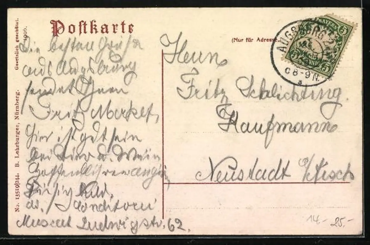 alte Ansichtskarte, gelaufen 1908, Briefmarke entfernt, guter Zustand