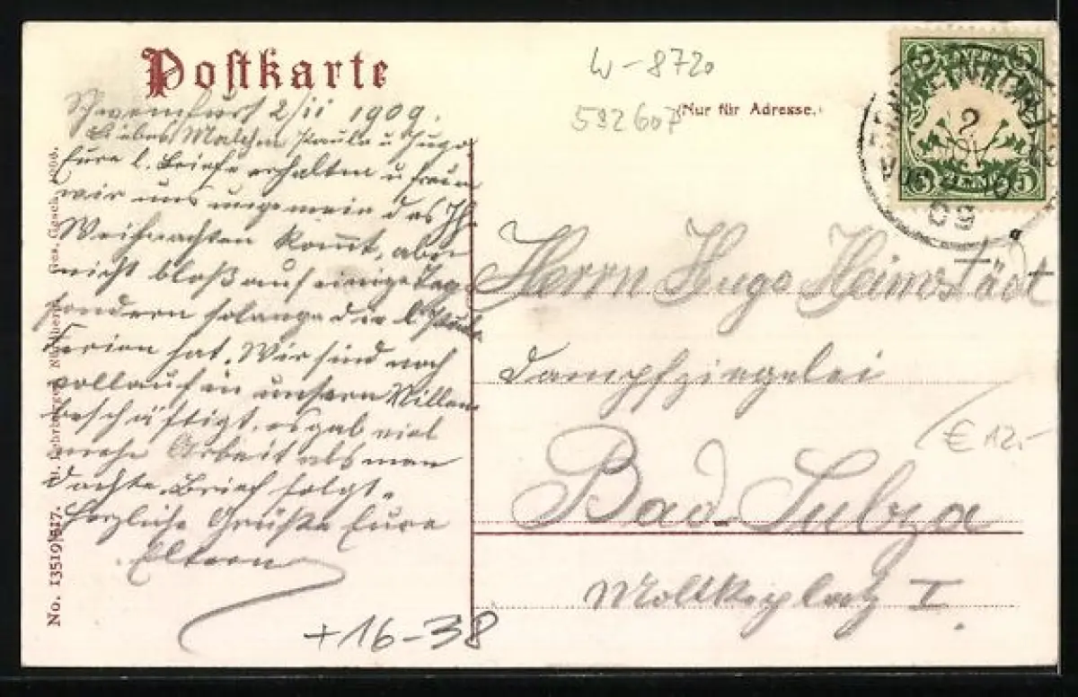 alte Ansichtskarte, gelaufen 1909, guter Zustand