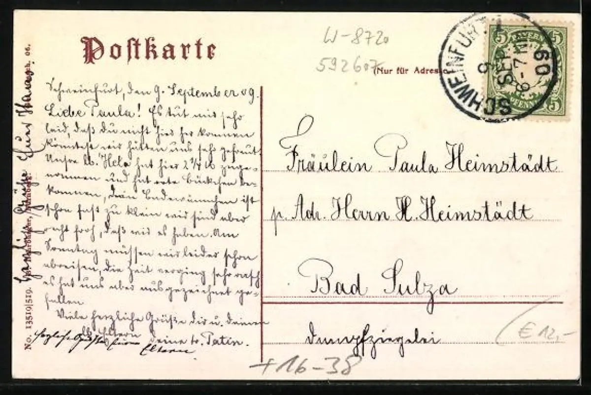 alte Ansichtskarte, gelaufen 1909, guter Zustand