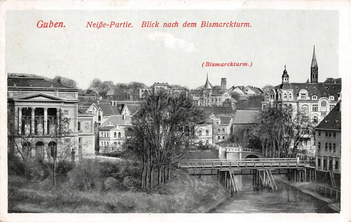 Guben Neiße-Partie Blick nach dem Bismarckturm AK 1915