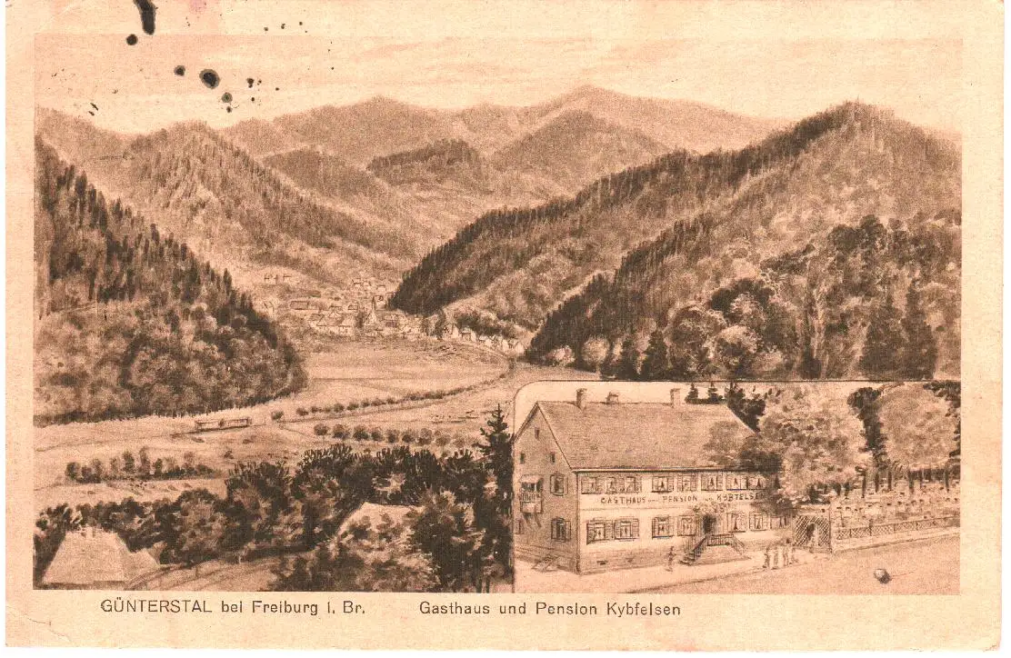 Günterstal b. Freiburg, Gasthaus u. Pension Kybfelsen, 1921 gebr. sw-AK.