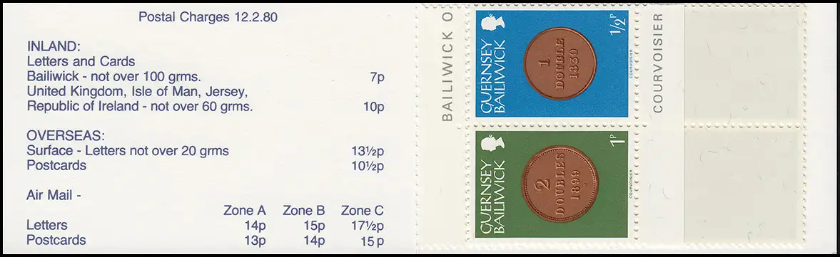 Guernsey Markenheftchen 8 Münzen Heftchenblatt 8 Castle Cornet blau 1980, **