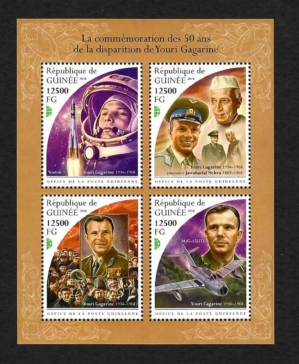 Guinea 2018: 50. Todestag von Youri Gagarine, Block, ** mnh