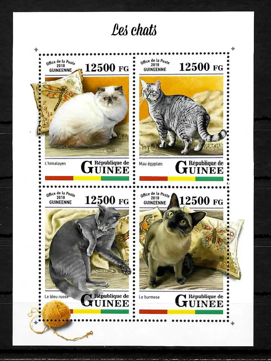 Guinea: Katzen - cats, 4 Briefmarken im Block, postfrisch