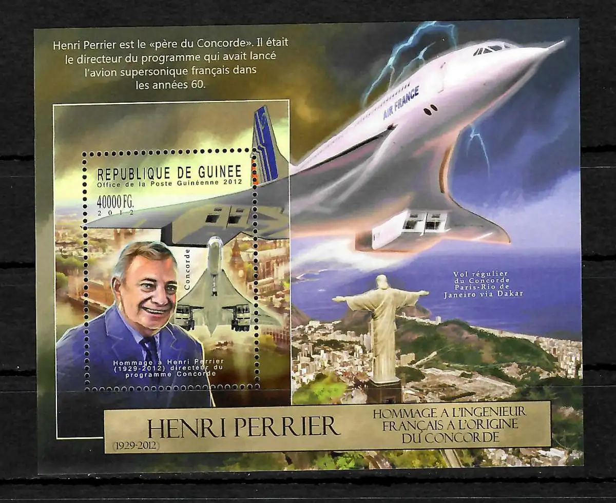 Guinea: Tod von Henri Perrier, - Flugzeug- Air France, Concorde Block postfrisch