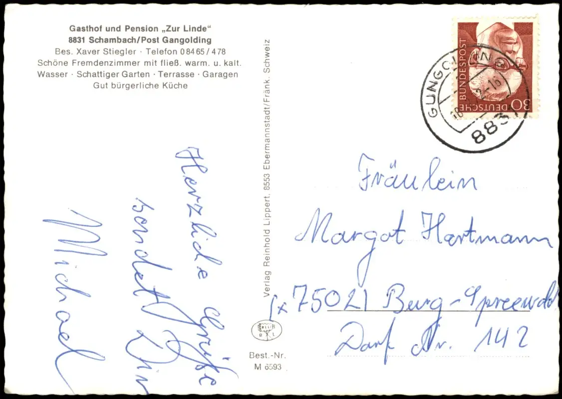 Gungolding-Walting Gasthof und Pension ,,Zur Linde" Schambach - MB 1972