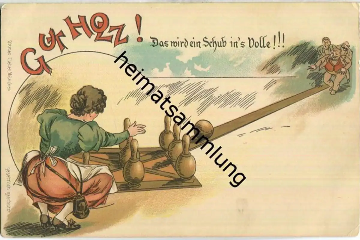 Gut Holz - Das wird ein Schuss ins Volle - Kegeln - Verlag Ottmar Zieher München ca. 1900