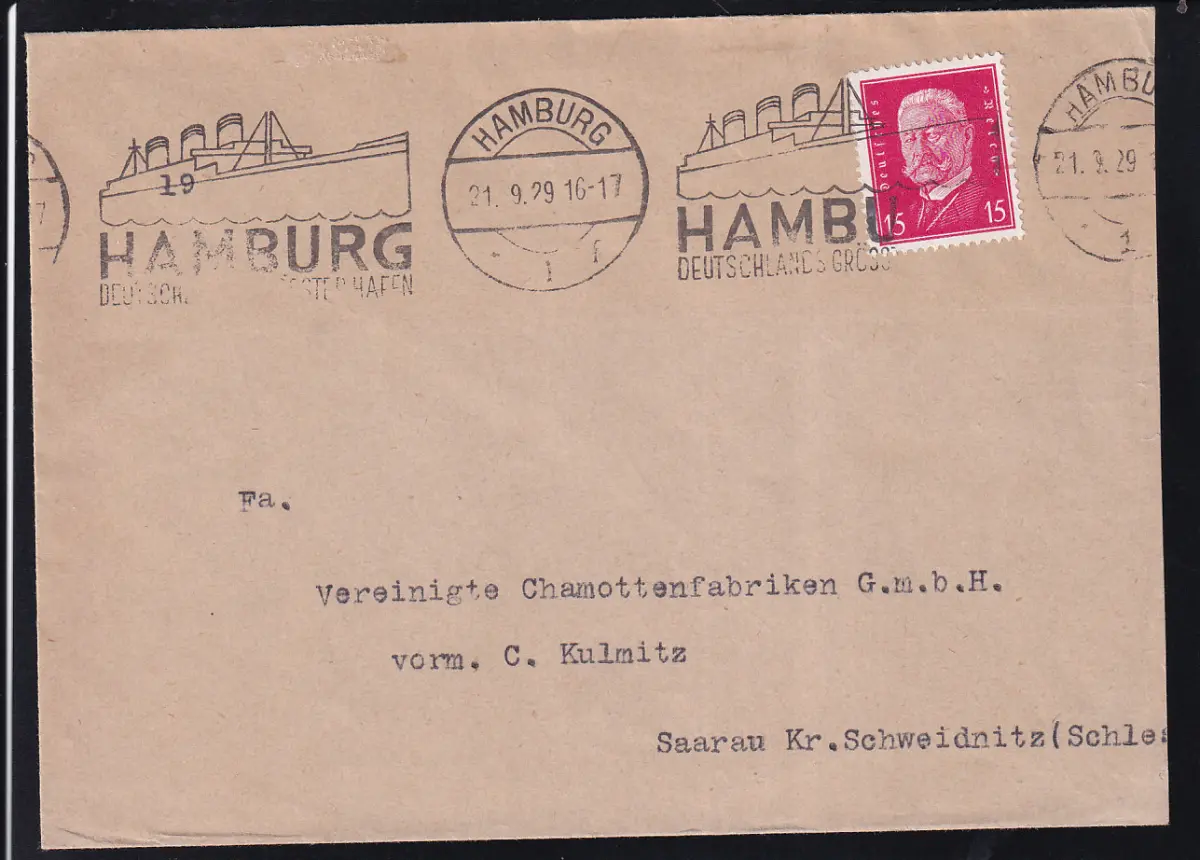 HAMBURG *1f 21.9.29 HAMBURG DEUTSCHLANDS GRÖSSTER HAFEN auf Brief