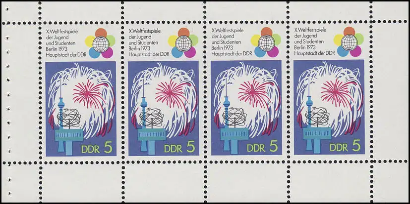 HBl. 16A aus MH 7 Weltfestspiele, PLF Punkt zwischen Gelb und Blau, Feld 3, **