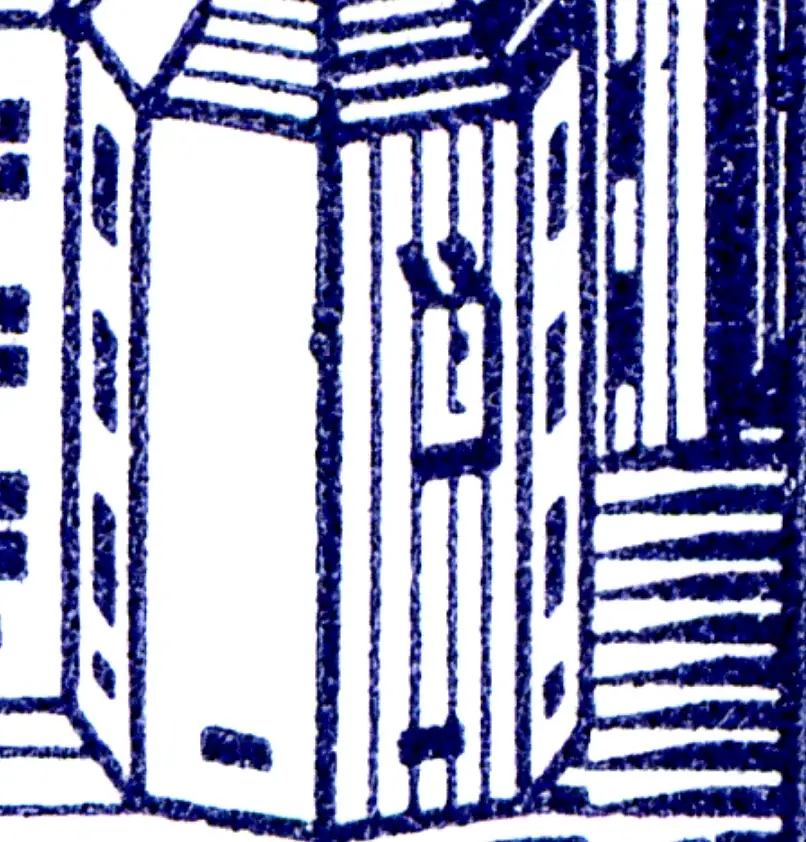 Heftchenblatt mit Doppel-Plattenfehler XXVb: Verdickung der Linie im rechten Turm (532I/XXIb)