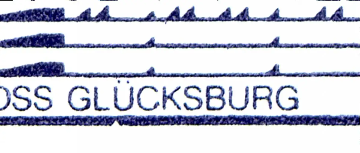 Plattenfehler II: Rahmenkerbe unter dem Ü von GLÜCKSBURG (532I/XIII)