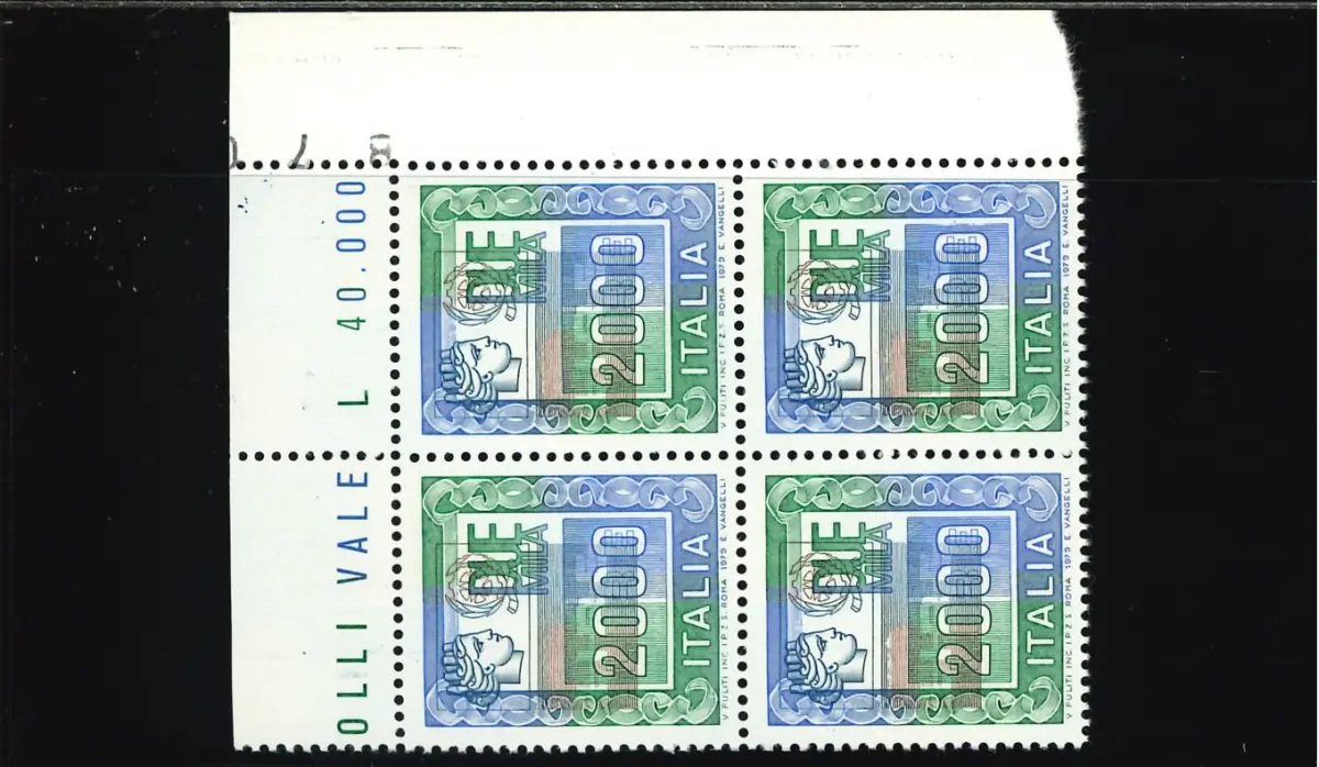 MNH - Vollgummi - HOHER WERT 2000 L. KOPF NACH OBEN BIS LINKS VIERTEL BLATTECKE VERSCHOBEN - Kat. euro 400 Cod. ITAV_0500