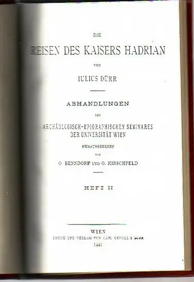 Hadrian. - Dürr, Julius: Die Reisen des Kaisers Hadrian. (= Abhandlungen des archäologisch-epigraphischen Seminars der Universität Wien, Heft 11).