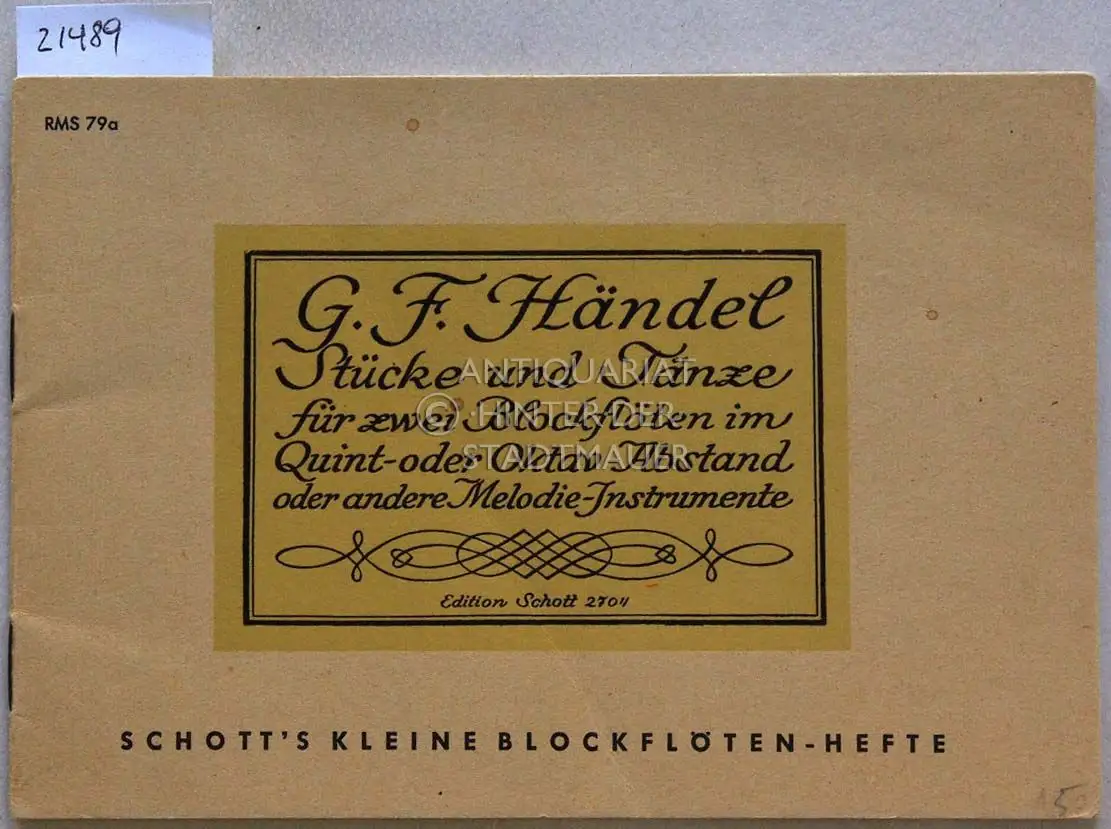 Händel, Georg Friedrich: Stücke und Tänze für zwei Blockflöten im Quint- oder Oktavabstand, auch andere Melodie-Instrumente, eingerichtet. [= Schott`s kleine Blockflötenhefte, Ed. Schott 2704].
