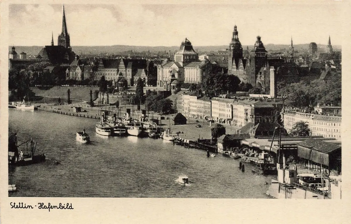 Hafenbild mit Landungsplatz Stettin Pommern Postkarte AK