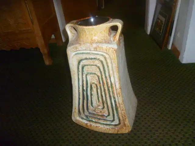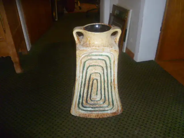 Halidan Kutlu Designer Überlacker Bodenvase Fat Lava Pop Art Design Formnummer 1790-50 seltene Farbwahl braun beige und Grüntöne um 1960 Jahre